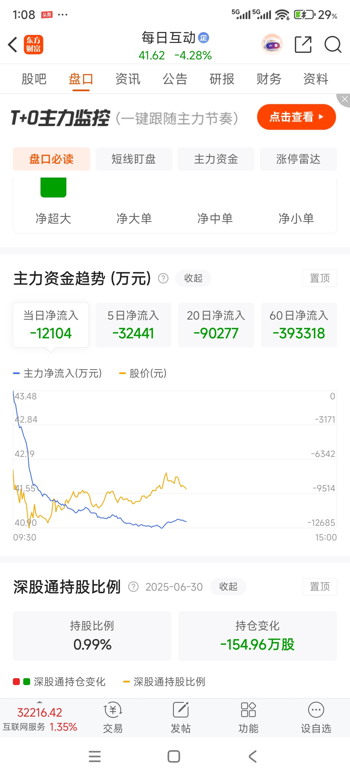 $每日互动(SZ300766)$ 资金不计成本的跑,公司肯定出问题了,市场这么好,能这么跌?你们还认为是洗盘?看看现在的位置,科技这么涨,每日几乎没动过,资金跑了这么多,只能说是公司出了不少问题,只不过没爆出出来!都认为R2出来会拉升,你们觉得主力会按照你的想法来嘛!!!每日就是个量化票。
