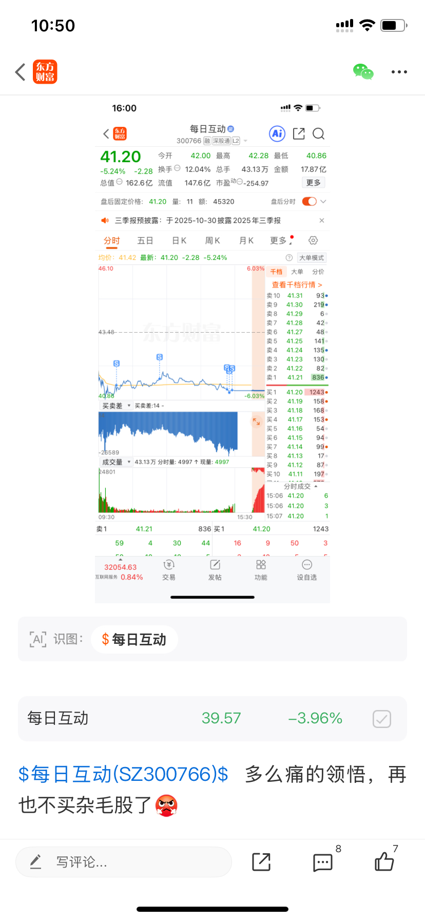 $每日互动(SZ300766)$ 昨天割了一帮人在下面嘲讽我!