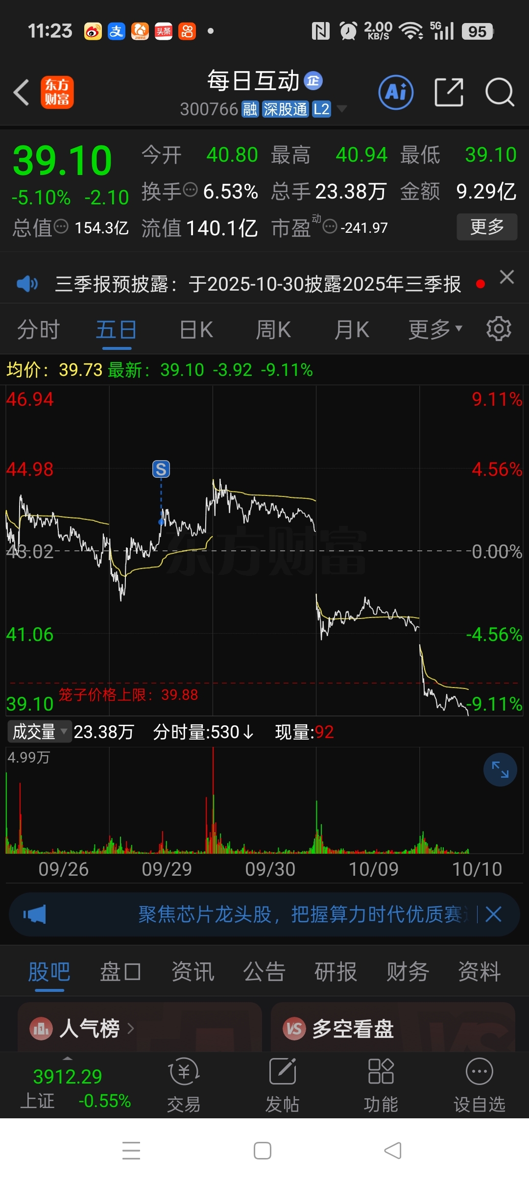 $每日互动(SZ300766)$ 好消息是前天卖了,坏消息是只卖了一半