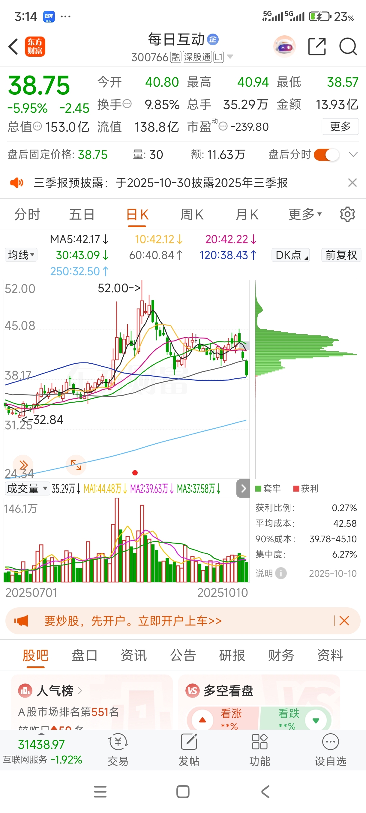 $每日互动(SZ300766)$ 肯定是暴了,董秘也没回复!这个走势就是暴了,就看公司什么时候回复了!