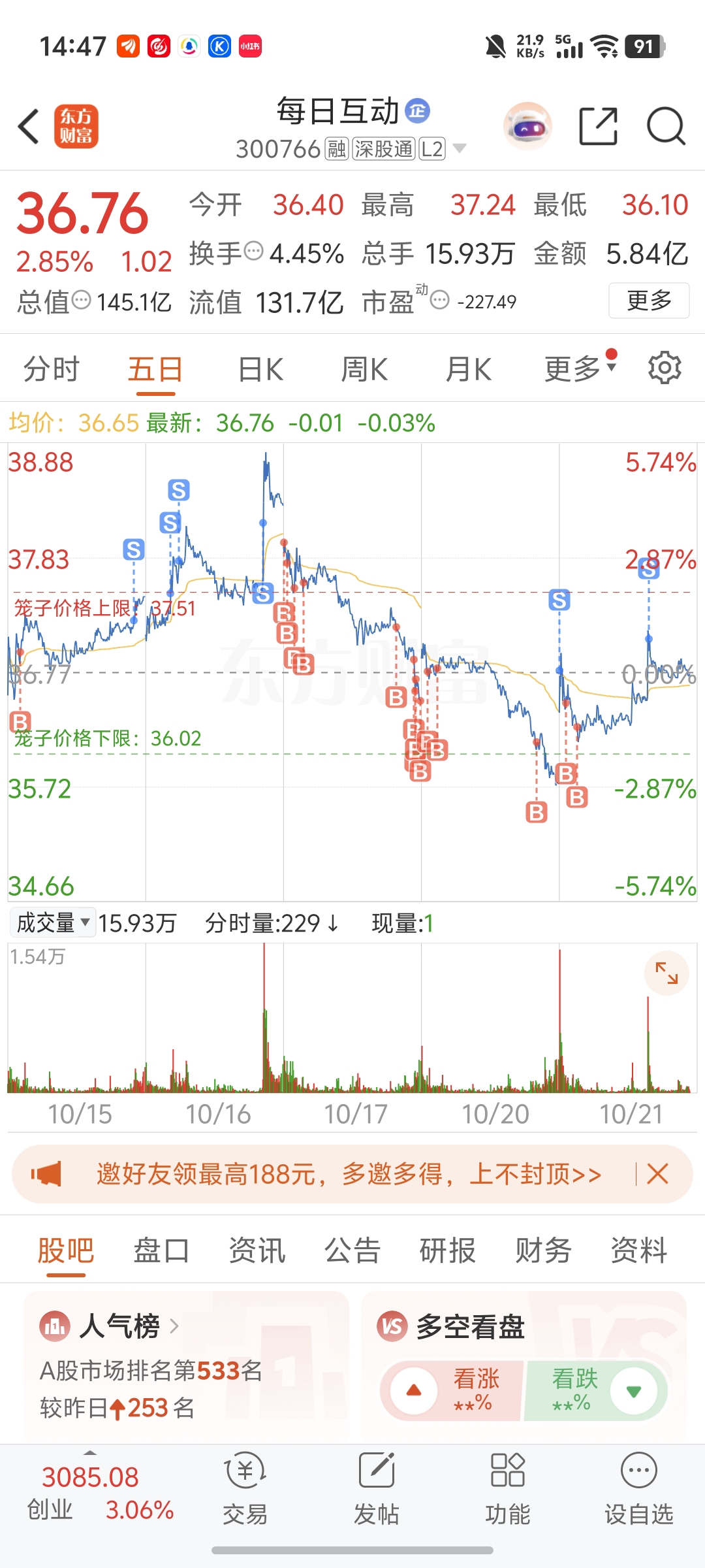 $每日互动(SZ300766)$ 主力爸爸 你太磨蹭了 我走了你可以拉了