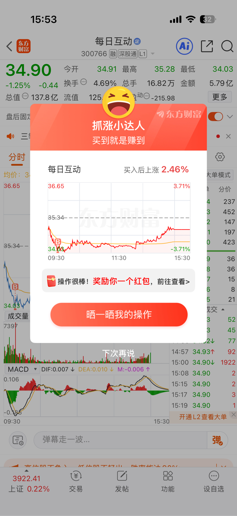 $每日互动(SZ300766)$ 缩量十字星,止跌信号已经出现,企稳回升指日可待,上升第一目标是43.48缺口,如披露三季报不达预期,就是预期,低开就是买