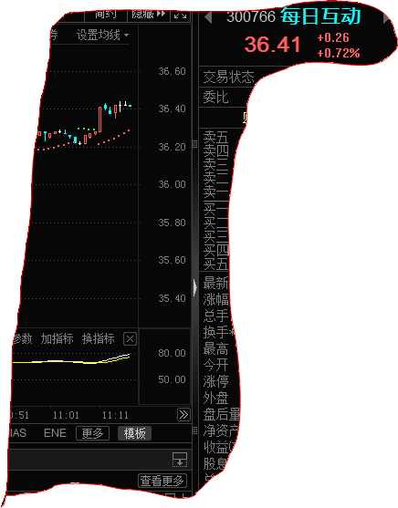 每日互动下午轻松突破37,上面的红绿点是多空,红点向上。下面是SKDJ指标,白线在上是金叉,这两个指标告诉: