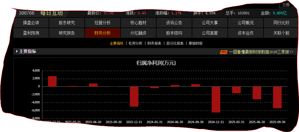 每日互动不宜重仓,财务太差,别家红柱向上,它家财务向下,随时都会出问题