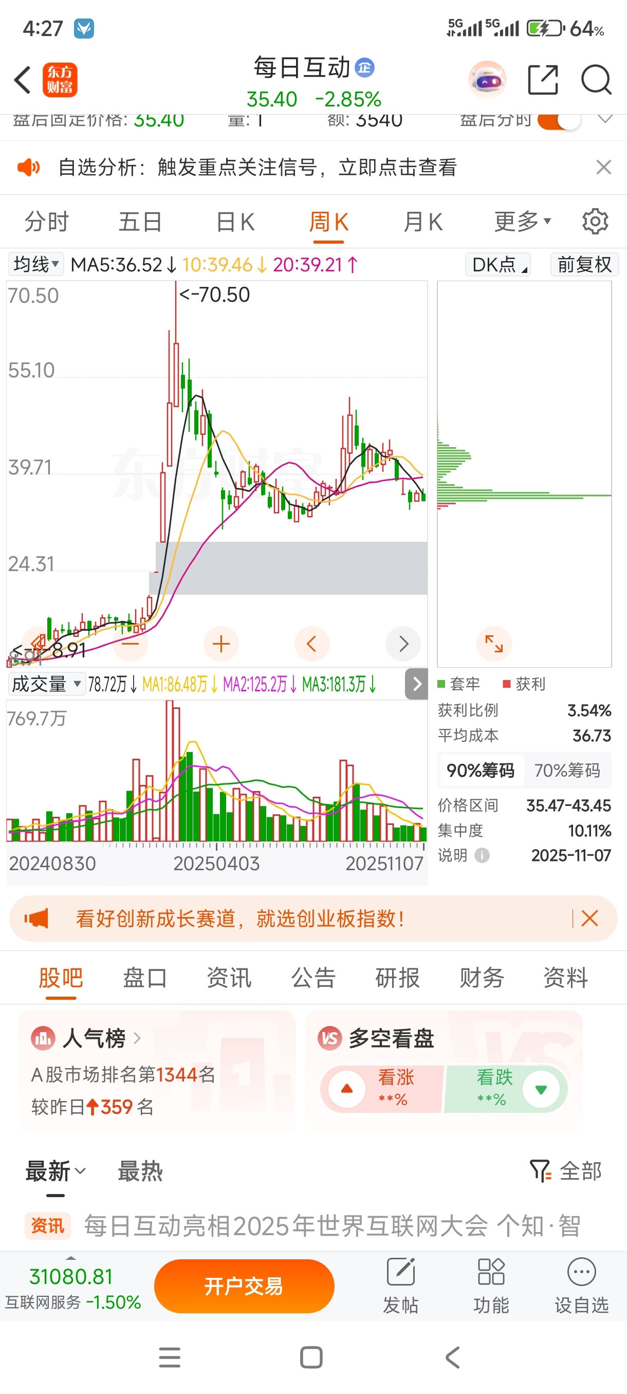 $每日互动(SZ300766)$ 下跌趋势,25块左右估计能见底,熬着吧!!