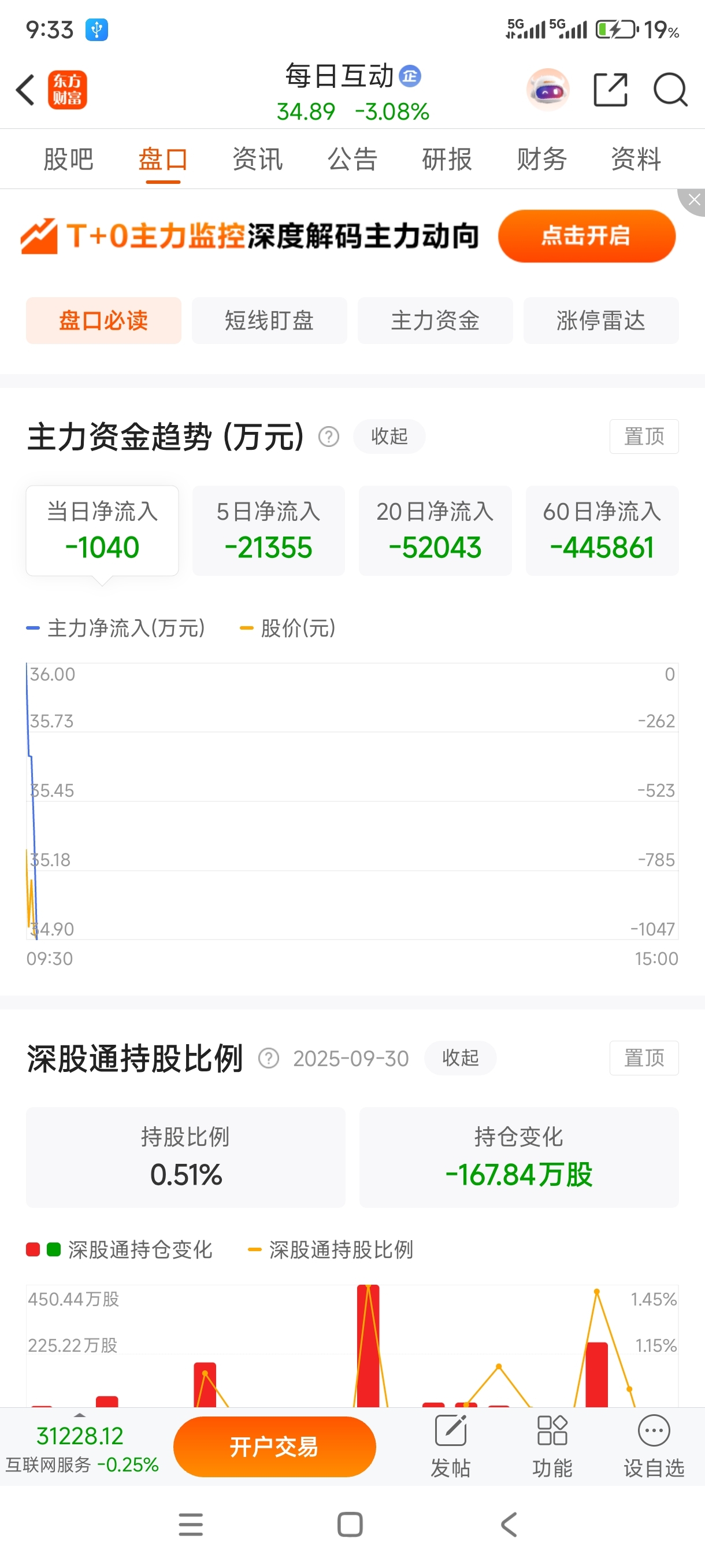 $每日互动(SZ300766)$ 看来今天要年线以下了