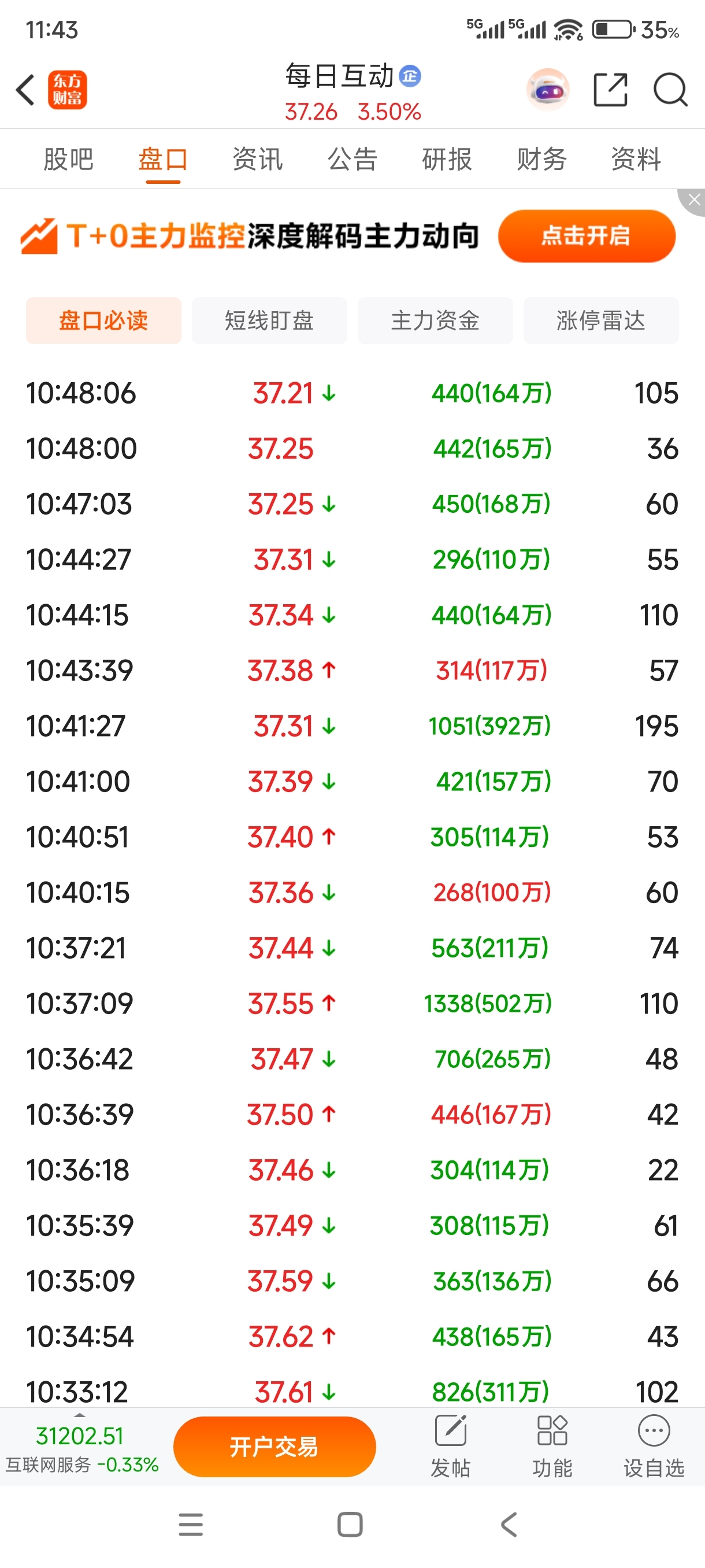 $每日互动(SZ300766)$ 冲高回落,主力开始出货了……