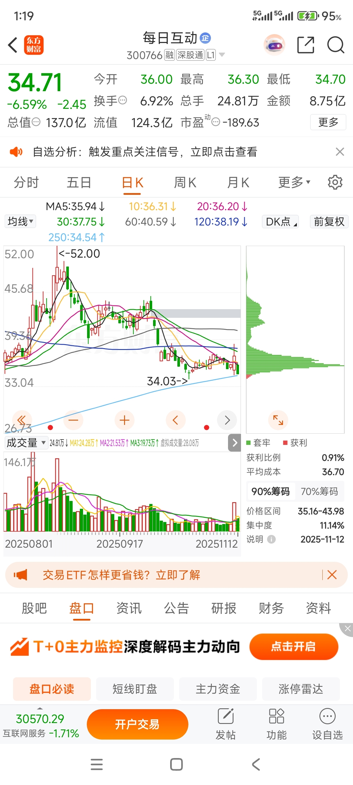$每日互动(SZ300766)$ 年线要破了,深不见底,都熬着吧!!