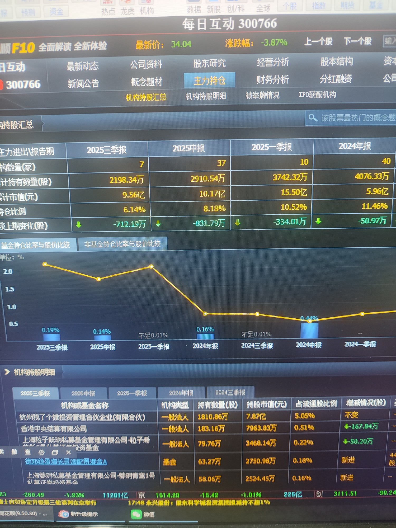$每日互动(SZ300766)$ 机构已经全部清空了,别再幻想了,年初炒概念涨了这么多,现在都是历史套牢盘了,没有主力会来解套,股价低点到现在是从七八块涨起来的,现在还涨了五倍,这个跌幅远远不够,至少回到20元,机构不看好,减持,定增,亏损,这些都是制约股价上涨的压力。