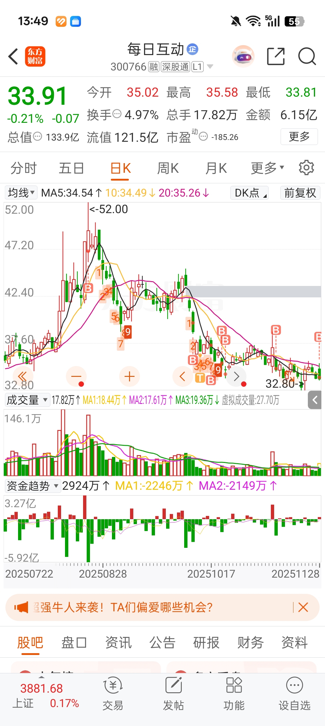 $每日互动(SZ300766)$ 真不争气呀,越补越跌,这个LJ货