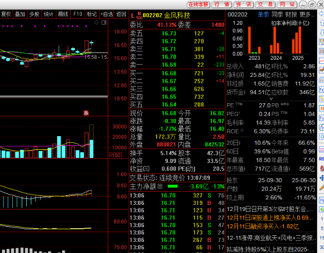 同样是减持的股票,别人就是不断地涨,昨天还涨停。看002202金凤科技