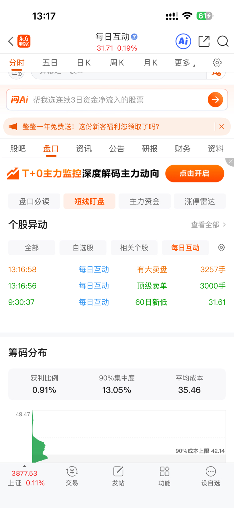 $每日互动(SZ300766)$ 各自安好,这段时间每天早上起来都会看到60日新低的刷新