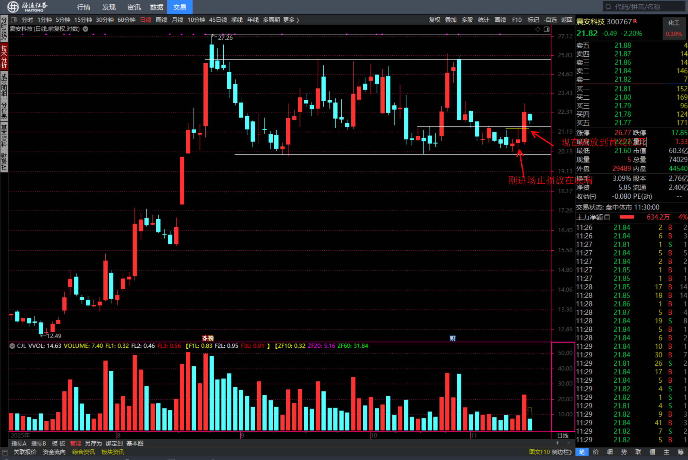 昨天大约+5%入场;盘中最高推到+9.77%