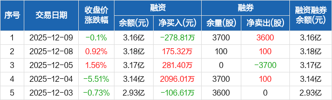 震安科技:融资净偿还278.81万元,融资余额3.16亿元(12-09)