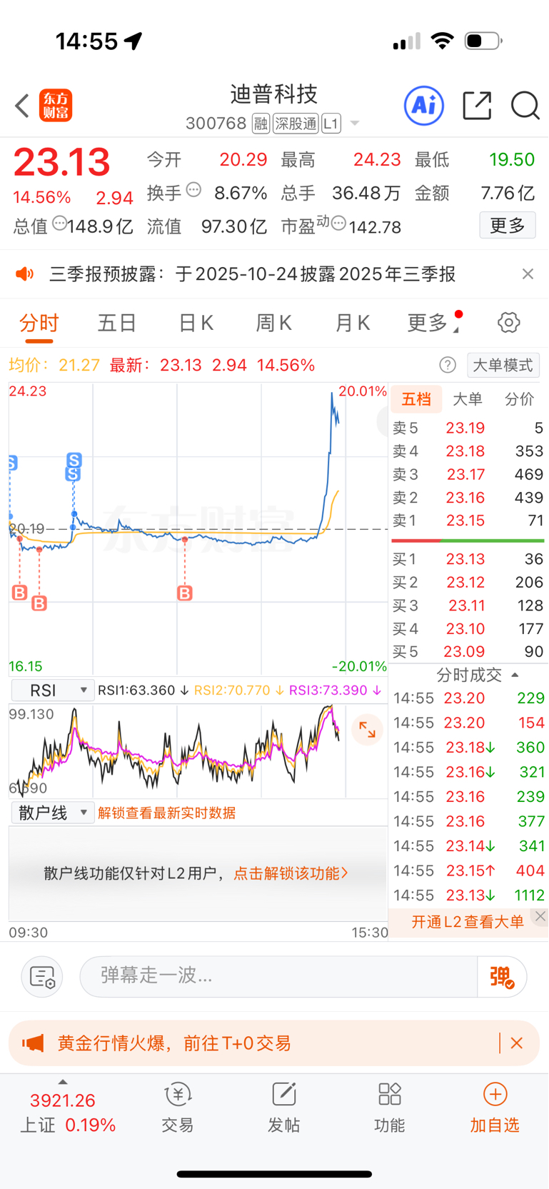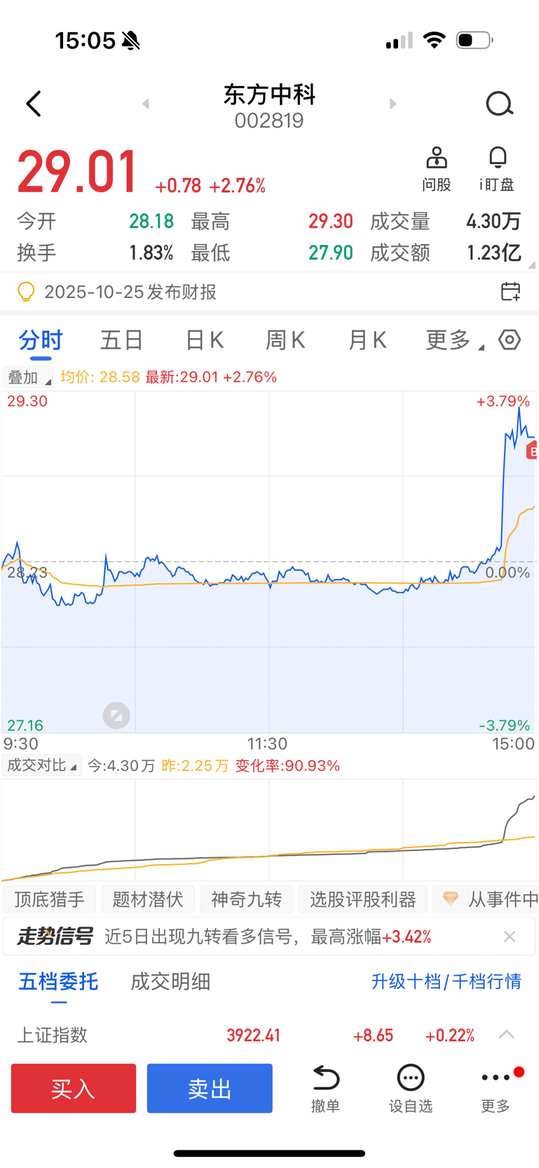 没想到今天能涨这么多,可惜了卖了一大半,还好今天还接回来一些,尾盘又买了东方中科
