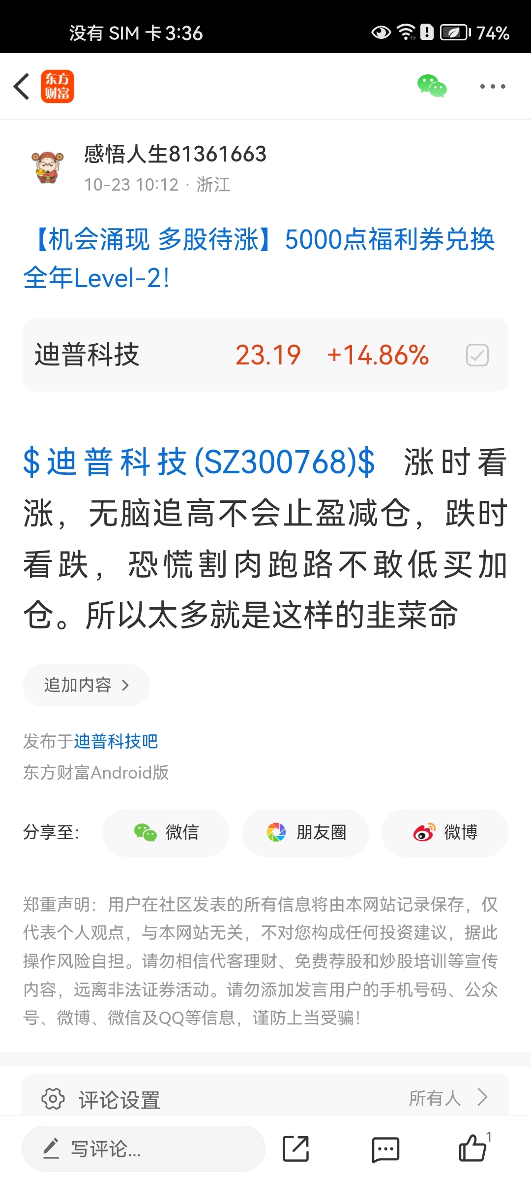 温馨提示: 1.根据《证券法》规定,禁止编造、传播虚假信息或者误导性信息,扰乱证券市场;2.用户在本社区发表的所有资料、言论等仅代表个人观点,与本网站立场无关,不对您构成任何投资建议。用户应基于自己的独立判断,自行决定证券投资并承担相应风险。《东方财富社区管理规定》