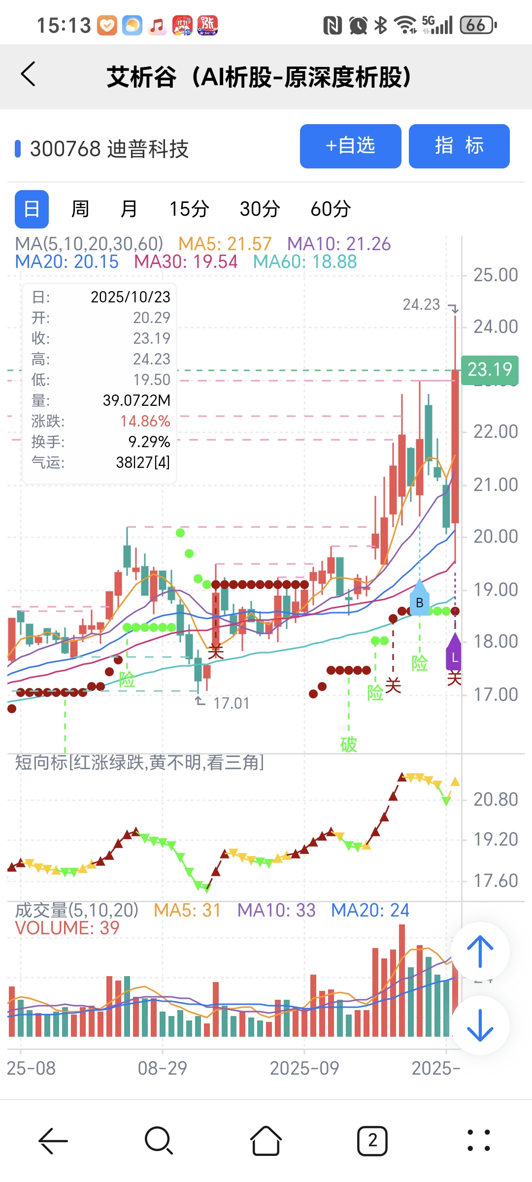 图中 B、L 关注标记是对应AI选股模型当天下午2点多给出。