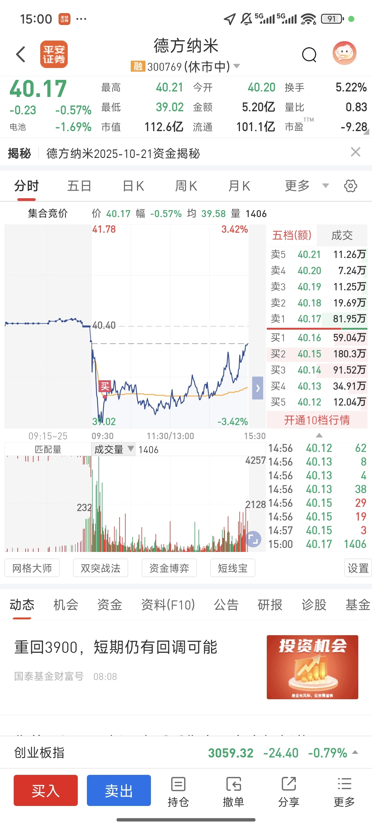 $德方纳米(SZ300769)$ 我早盘接回来了,明天大阳