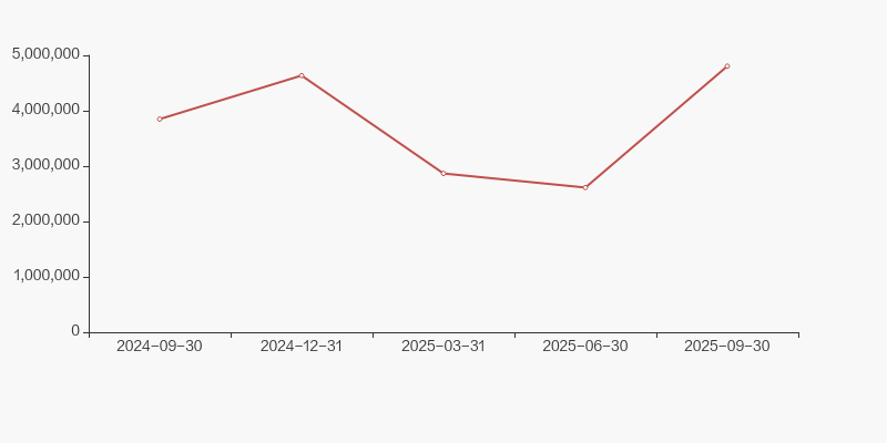 截至2025年9月30日,公司最新总股本为2.8亿股,其中流通股本为2.52亿股。户均持有流通股数量由上期的5210股下降至4767股,户均流通市值22.08万元。
