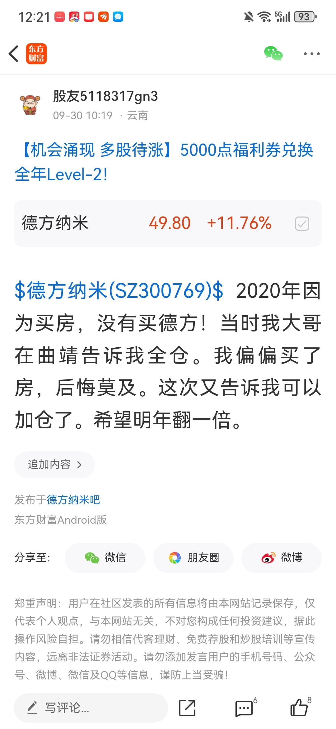 $德方纳米(SZ300769)$ 9月底就说了满仓干!因为回家跟我大哥聊了一下他们公司。