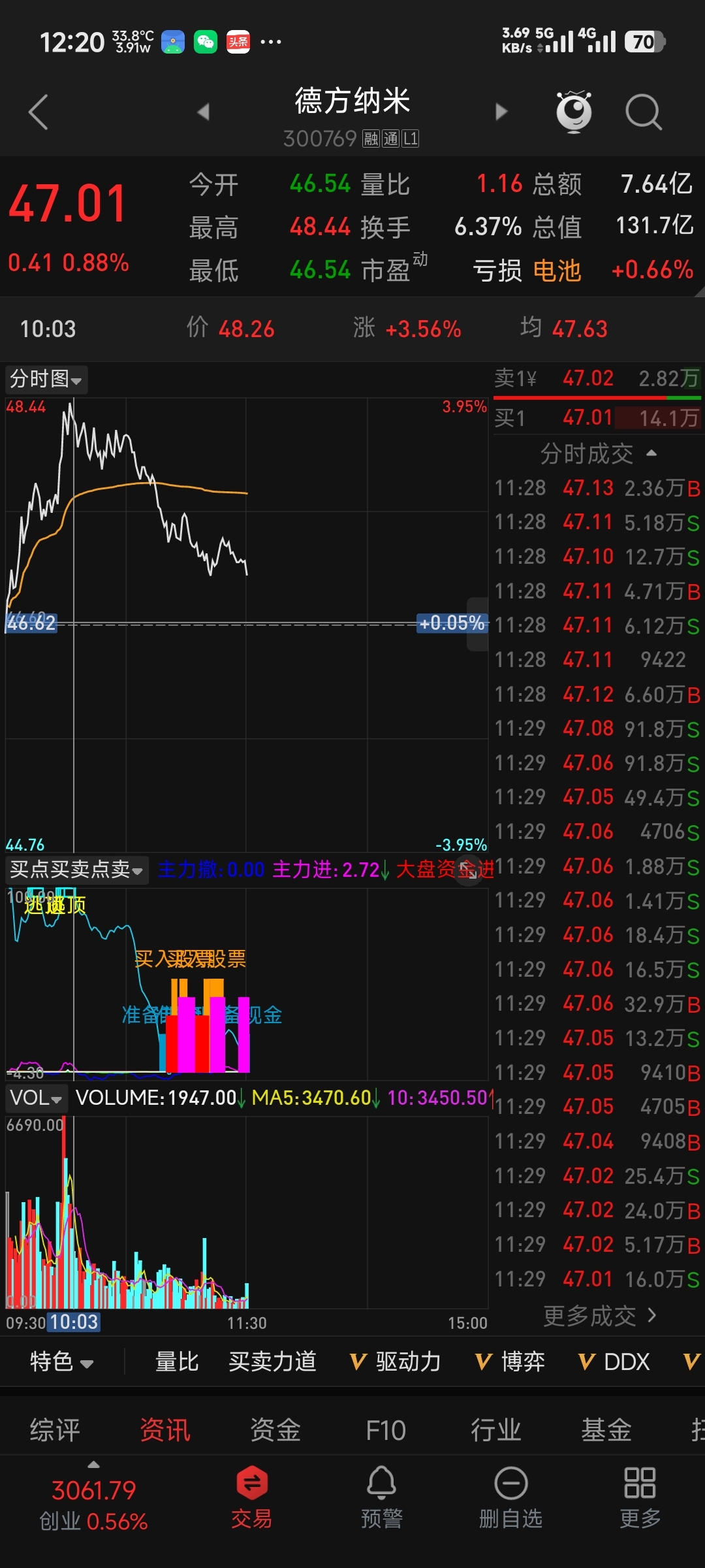$德方纳米(SZ300769)$ 今天贪心了,在高点犹豫又犹豫不舍得卖,
