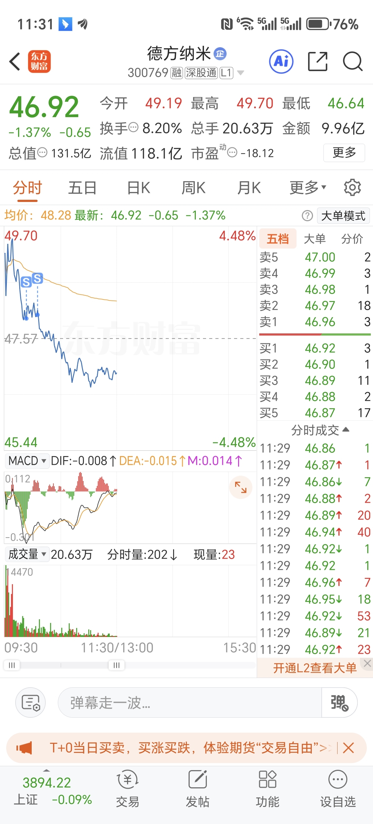 $德方纳米(SZ300769)$ 从赚六千多到只赚六百,,跑了,不跑的话,套住了,这个股真的是一言难尽