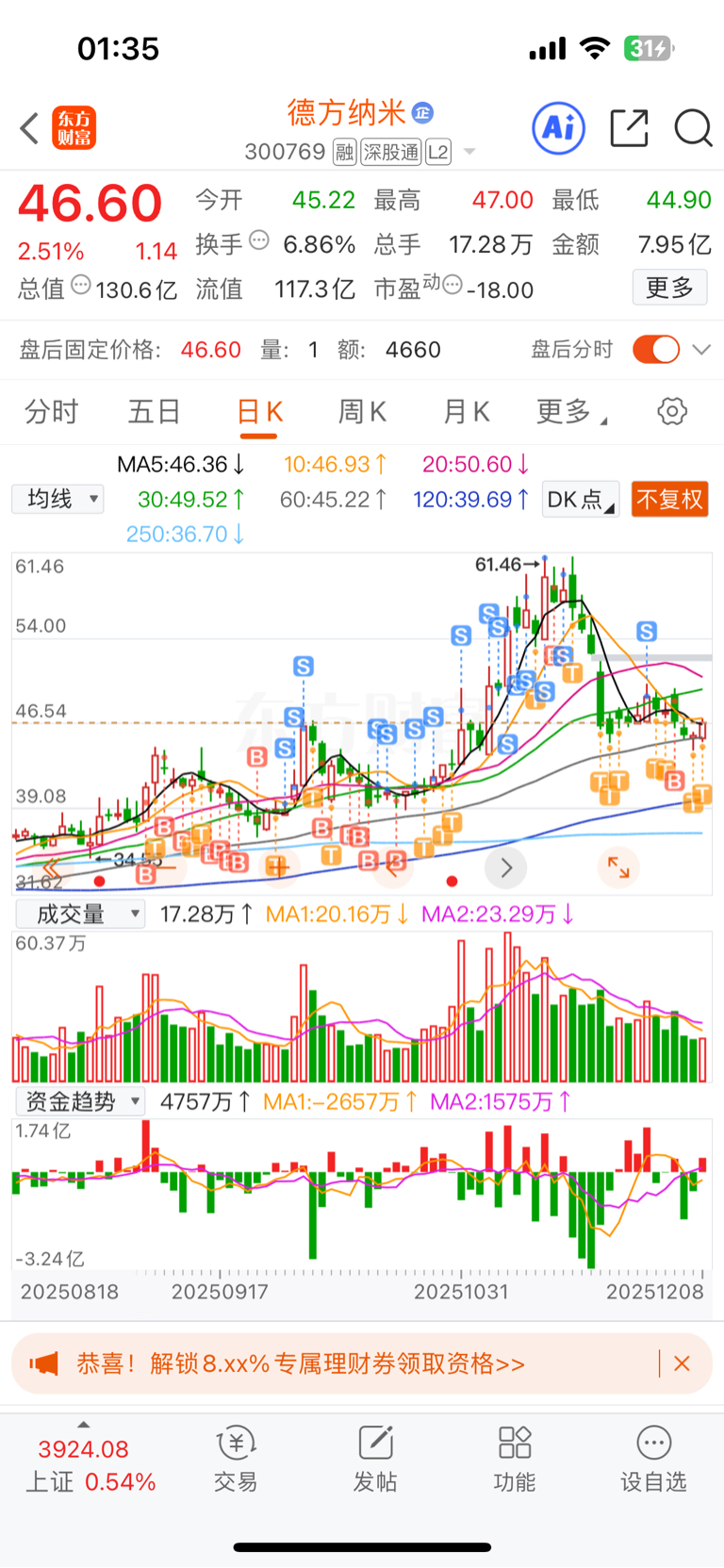 $德方纳米(SZ300769)$ 太累了 才赚了17W