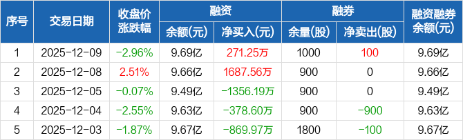 德方纳米:融资净买入271.25万元,融资余额9.69亿元(12-09)