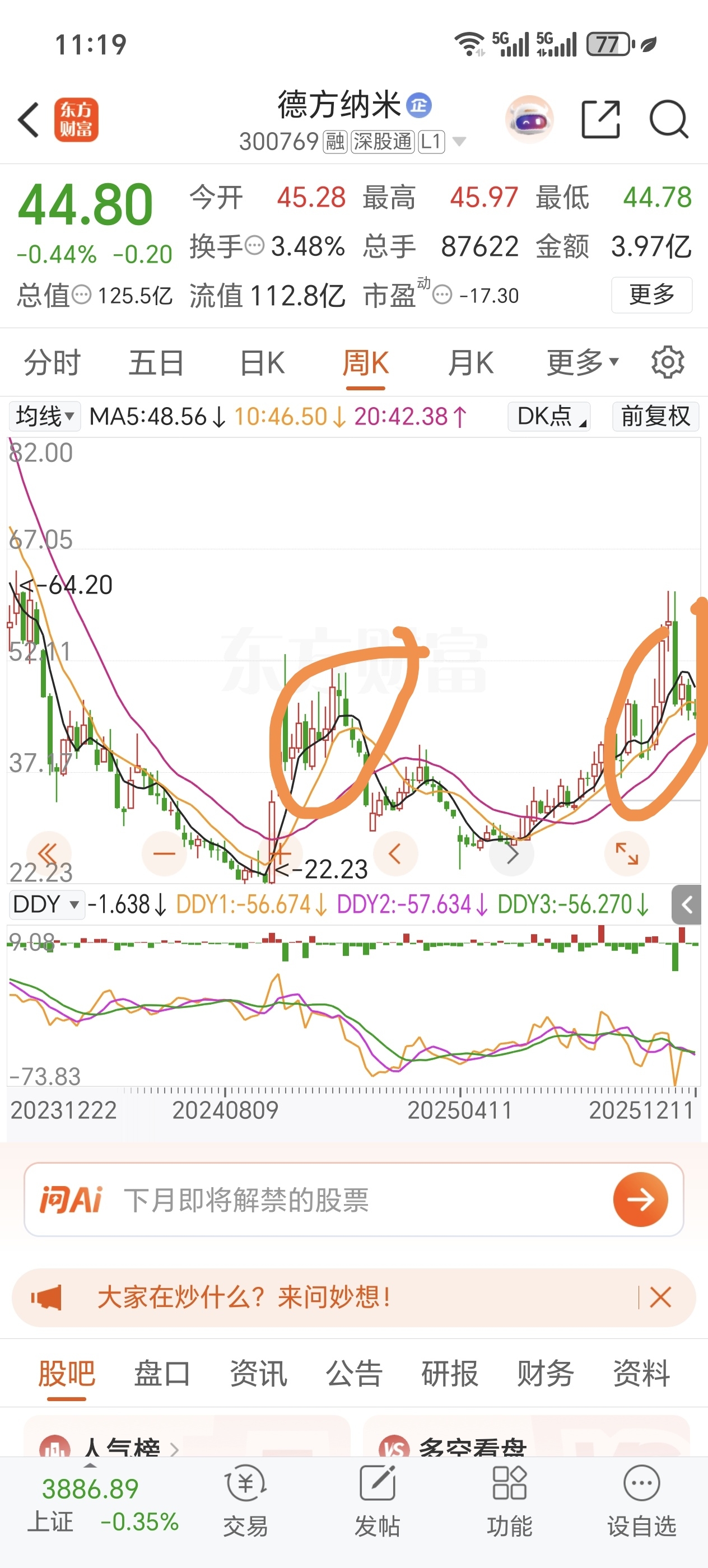 $德方纳米(SZ300769)$ 感觉跌到30只是时间问题,要么年底?要么明年四月份,大家看这个图,画的对不对????