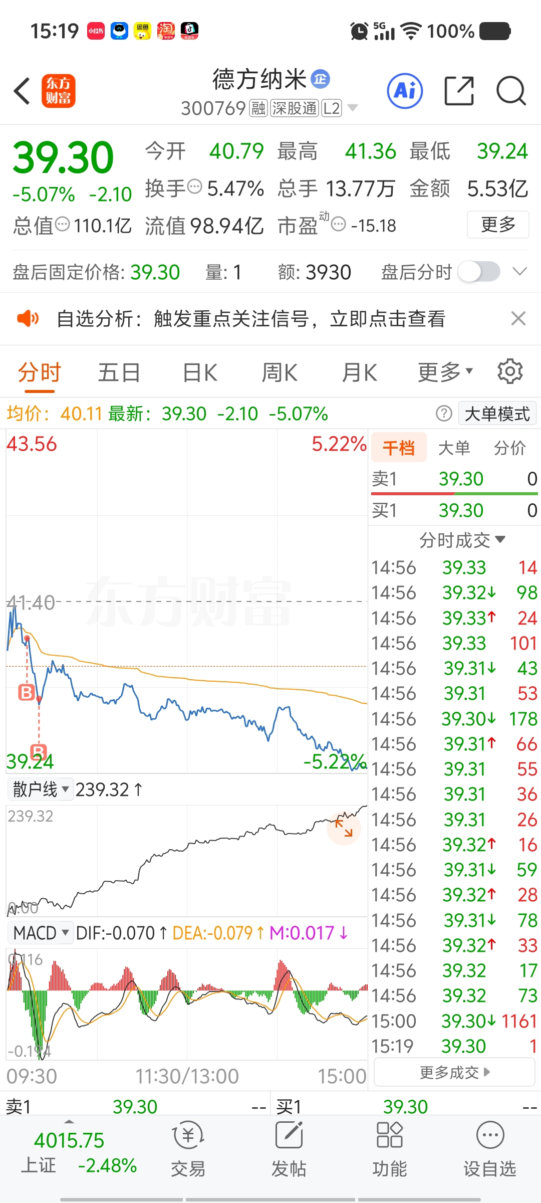 $德方纳米(SZ300769)$ 完了,以为跌到位了,这下接飞刀了