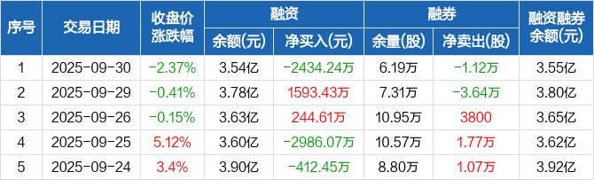 运达股份:融资净偿还2434.24万元,融资余额3.54亿元(09-30)