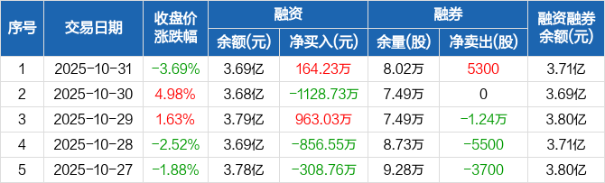 运达股份:融资净买入164.23万元,融资余额3.69亿元(10-31)