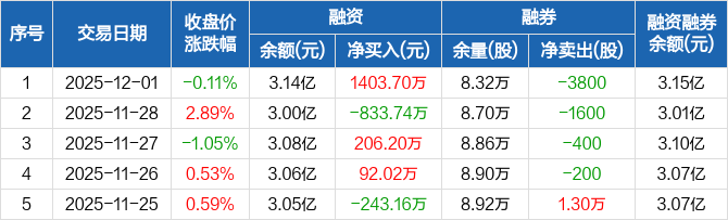运达股份:融资净买入1403.7万元,融资余额3.14亿元(12-01)
