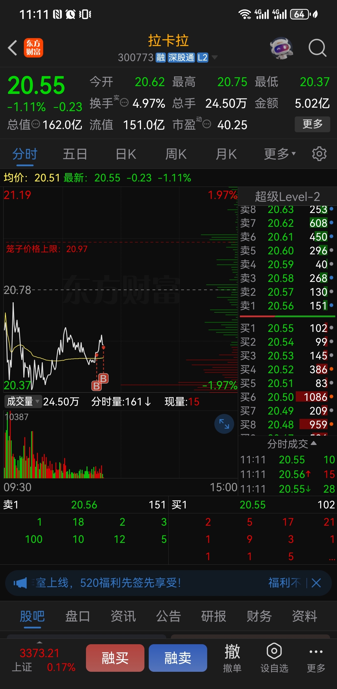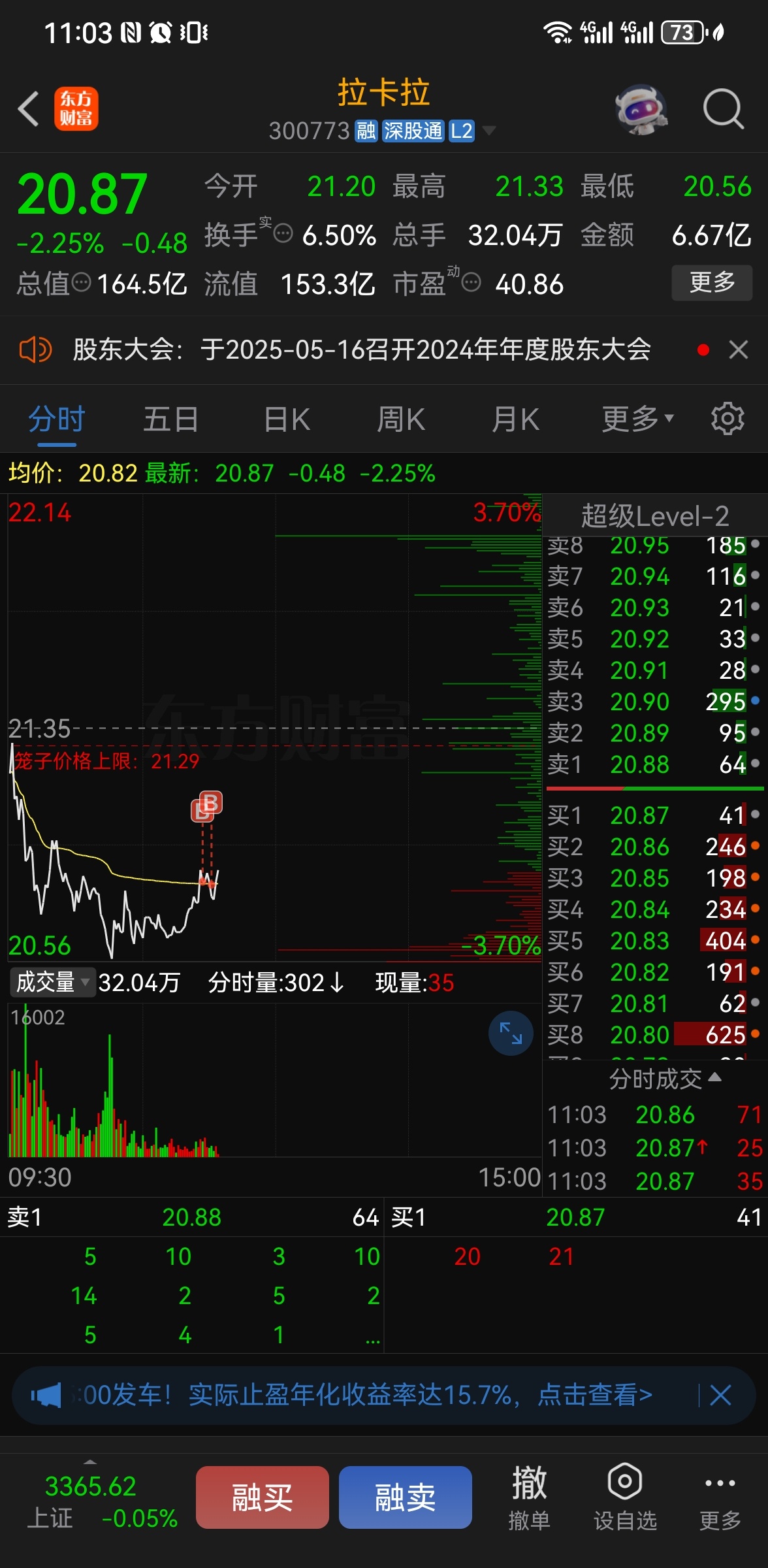 $拉卡拉(SZ300773)$ 兑现昨天承诺,今天再买两笔试水!