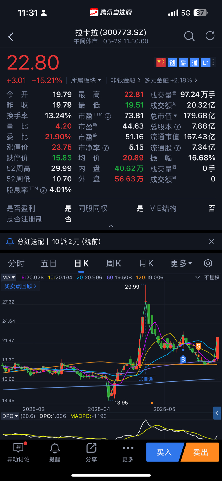 $拉卡拉(SZ300773)$ 跟着大股东减持#炒股日记#