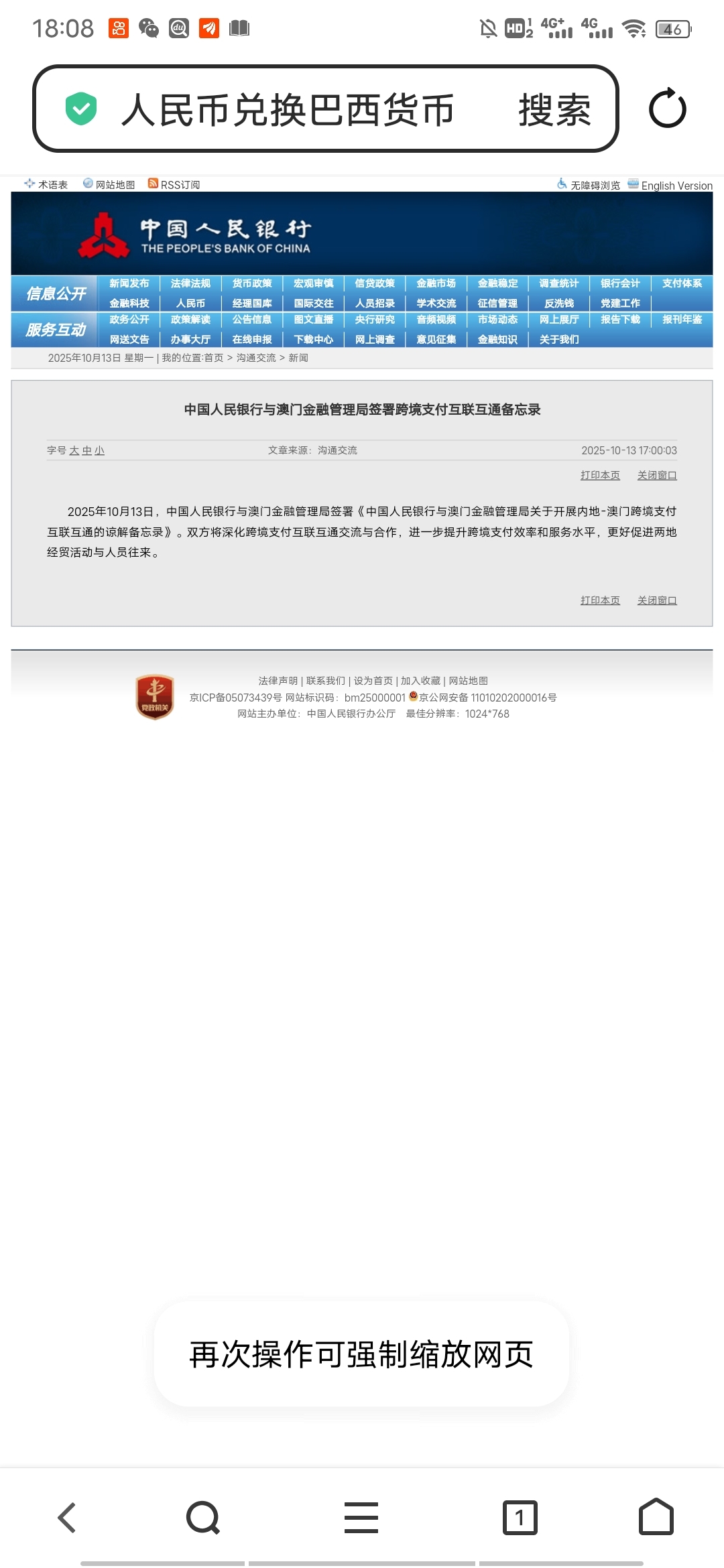 【中国人民银行与澳门金融管理局签署跨境支付互联互通备忘录】据央行网站消息,10月