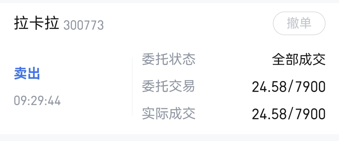 $拉卡拉(SZ300773)$ 不好意思,今天第一单是我砸的,因为今天大概率会随四方、恒宝补跌,虽然昨天很垃圾