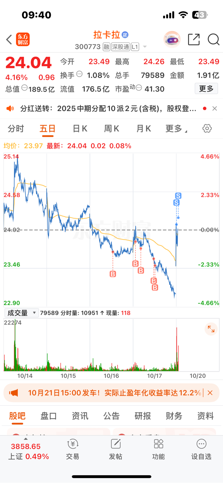 $拉卡拉(SZ300773)$ 感谢主力,赚点小钱,不贪!