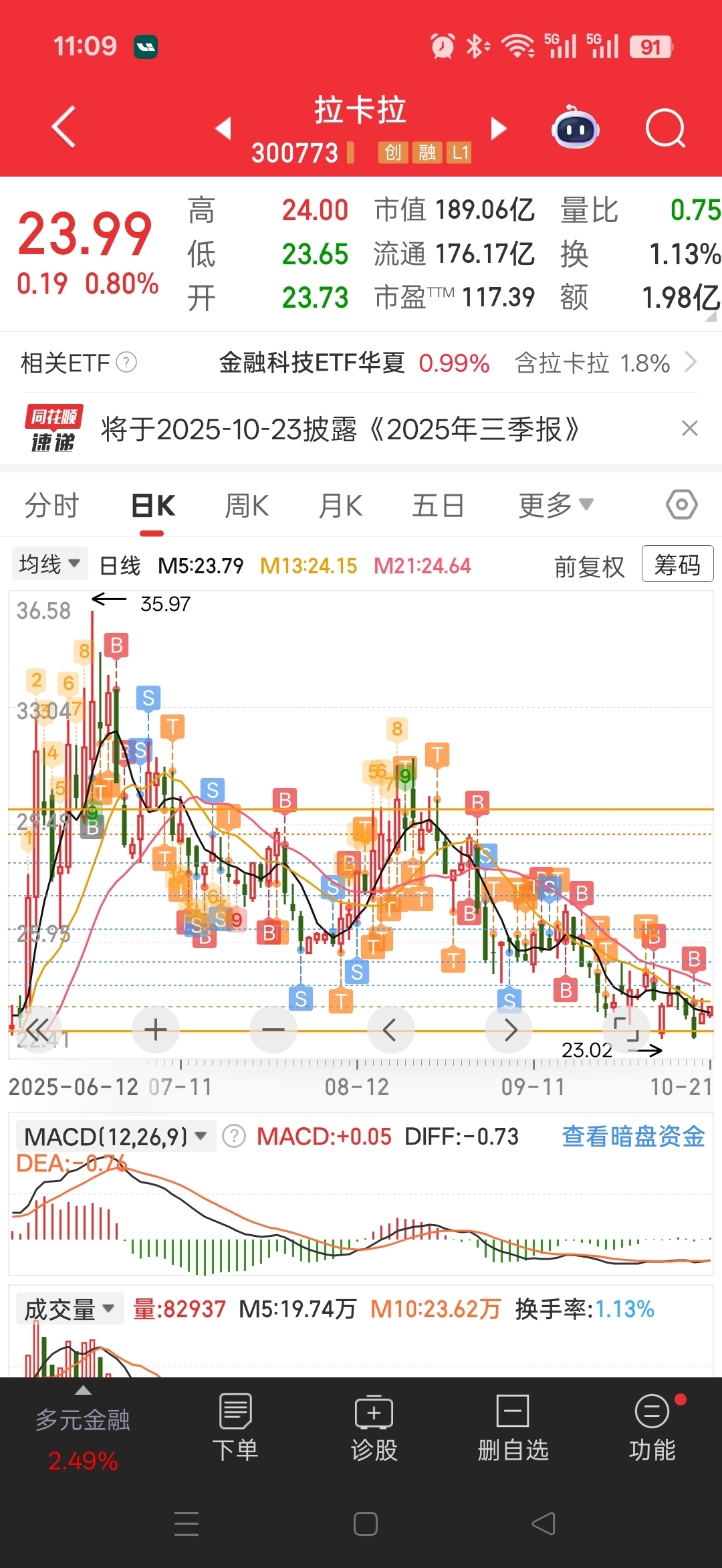 $拉卡拉(SZ300773)$ 你问我套的有多深,我套的有点深,我的钱没了,我的情人没了,我的车子也没了