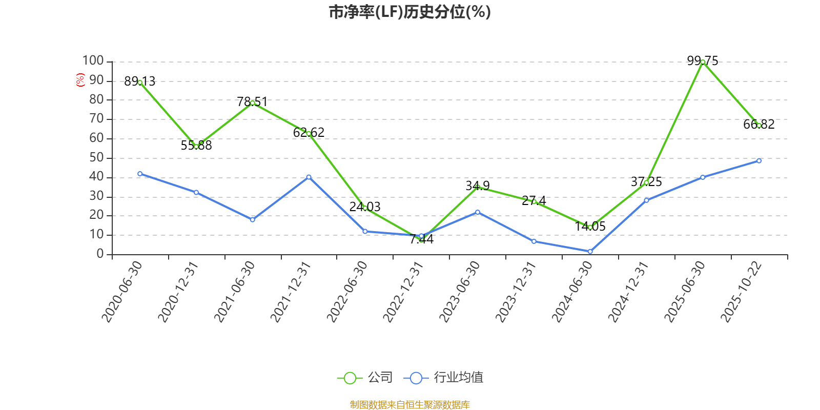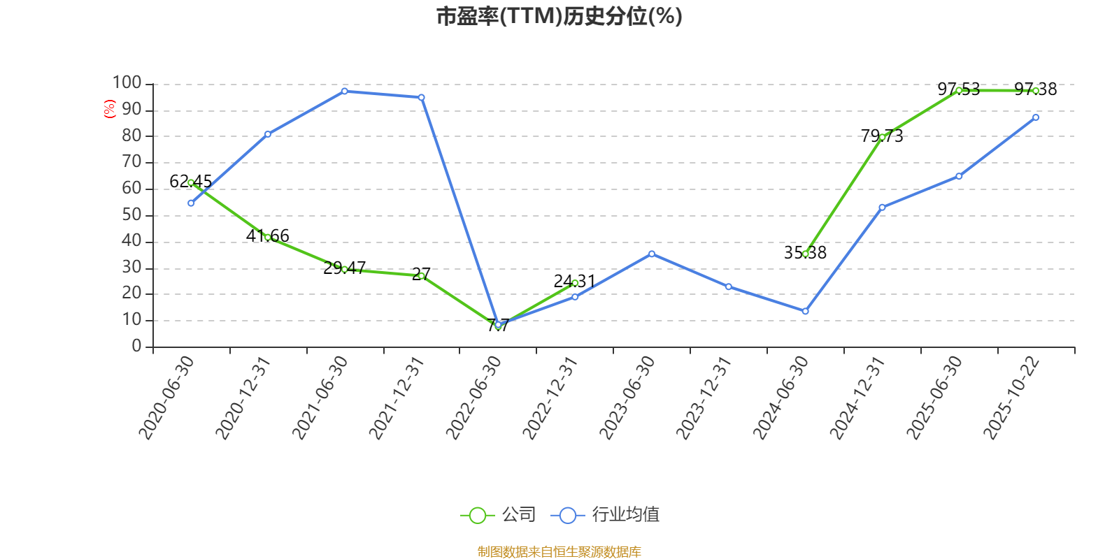 市盈率、市净率为负时,不显示当期分位数,会导致折线图中断。