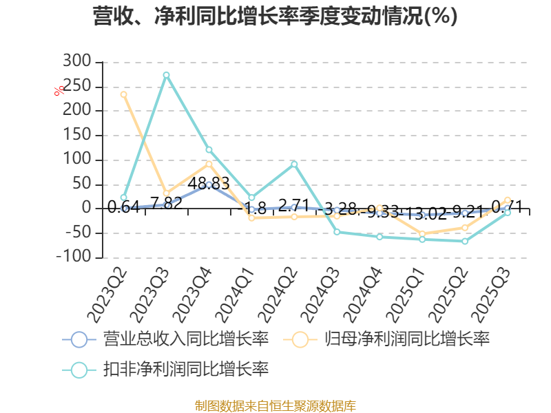 资产重大变化方面,截至2025年三季度末,公司货币资金较上年末减少3.83%,占公司总资产比重下降2.87个百分点;商誉占公司总资产的2.78%,上年末为0;其他非流动金融资产较上年末增加53.47%,占公司总资产比重上升1.01个百分点;其他流动资产较上年末增加38.1%,占公司总资产比重上升0.54个百分点。