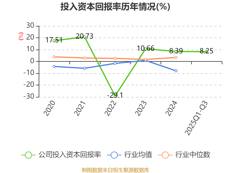盈利能力方面, 2025年前三季度公司加权平均净资产收益率为9.69%,同比下降3.84个百分点。公司2025年前三季度投入资本回报率为8.25%,较上年同期下降4.14个百分点。