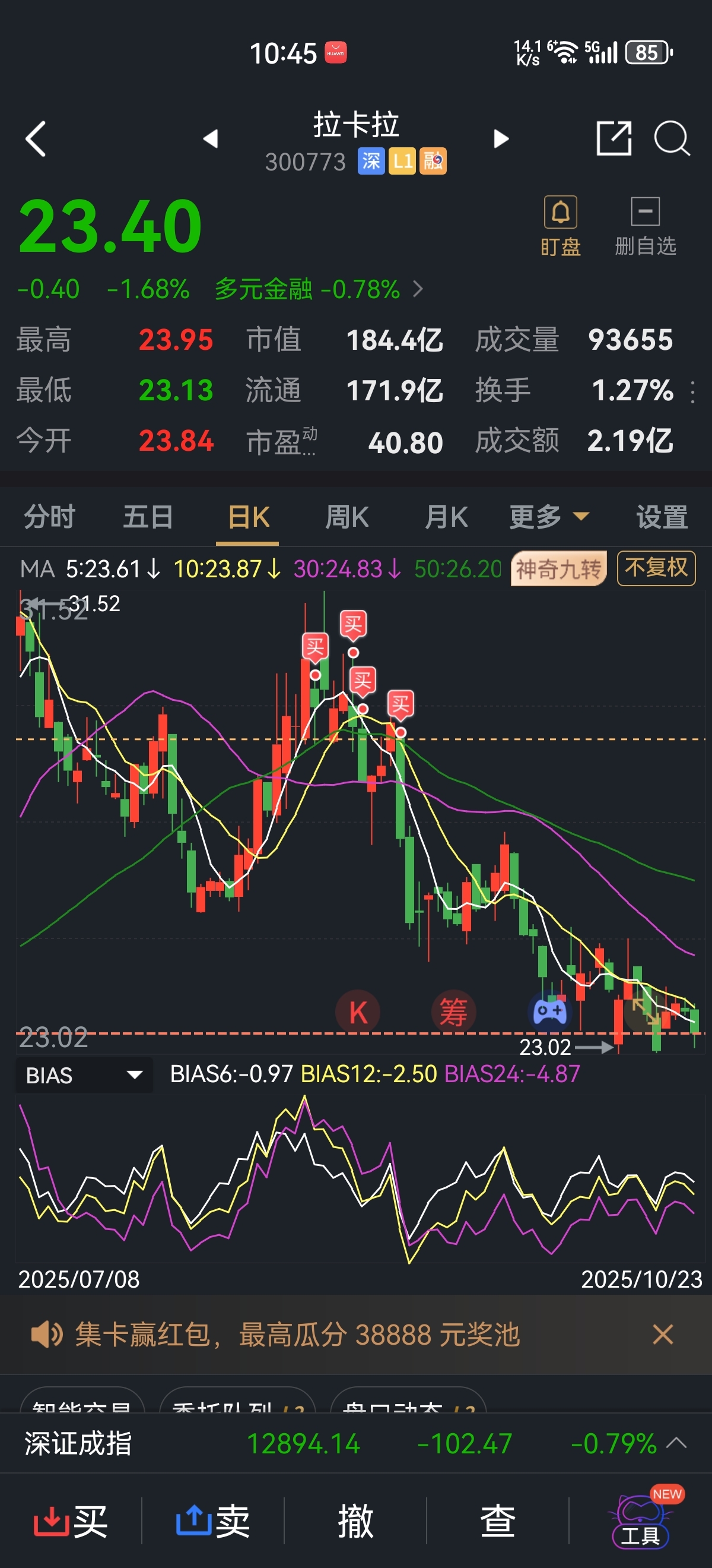 $拉卡拉(SZ300773)$ 这就是往死里扛的后果草~D~M!28.8的本牛年马月才能回来了。
