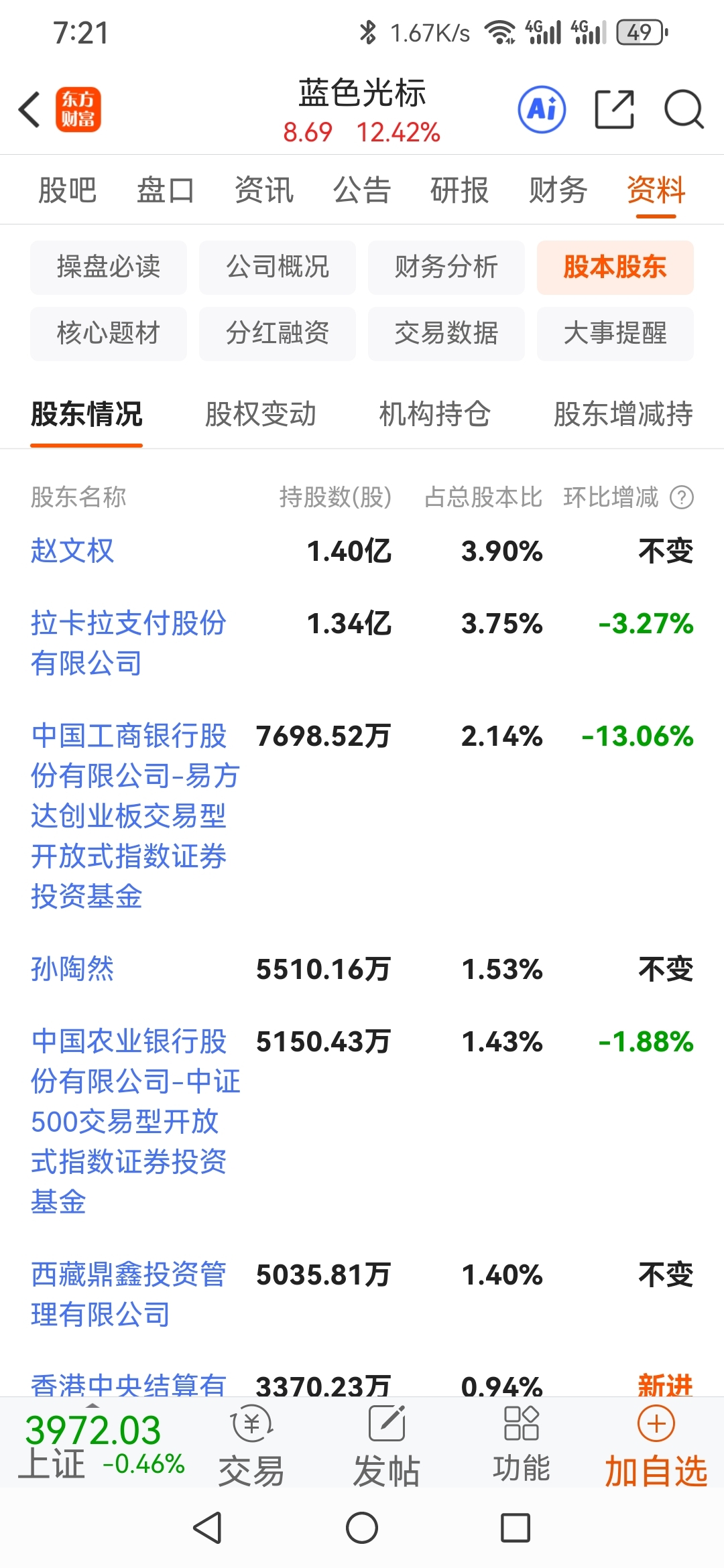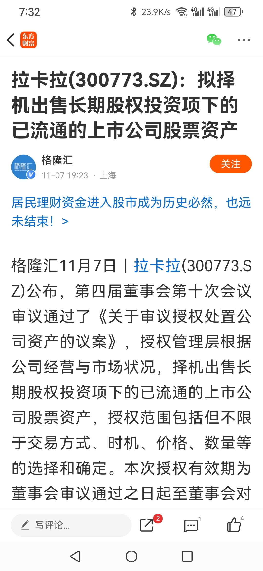 拉卡拉已出售蓝色光标约438万股,目前收入约3500万,业绩预增。后续继续出售蓝
