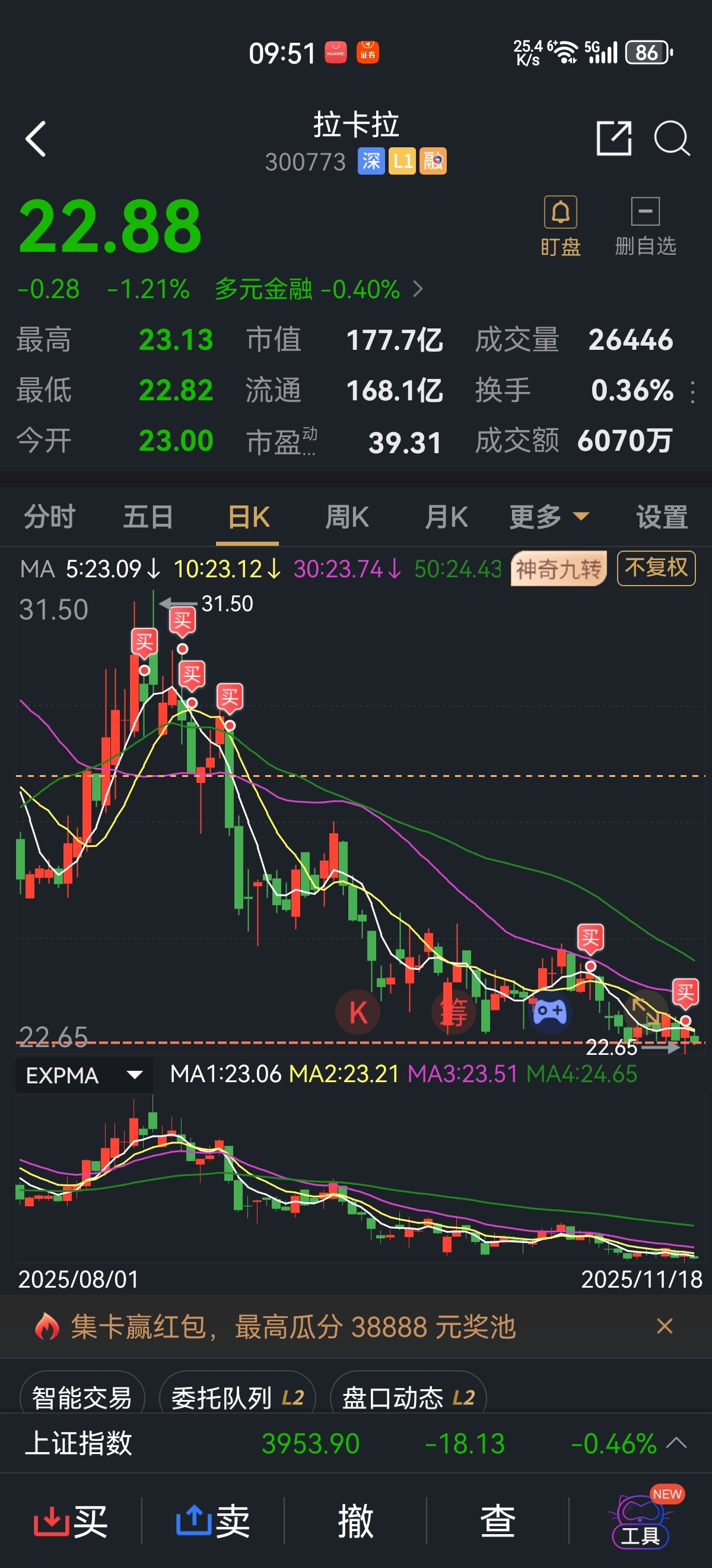 $拉卡拉(SZ300773)$ 越补越跌,正发瘟…