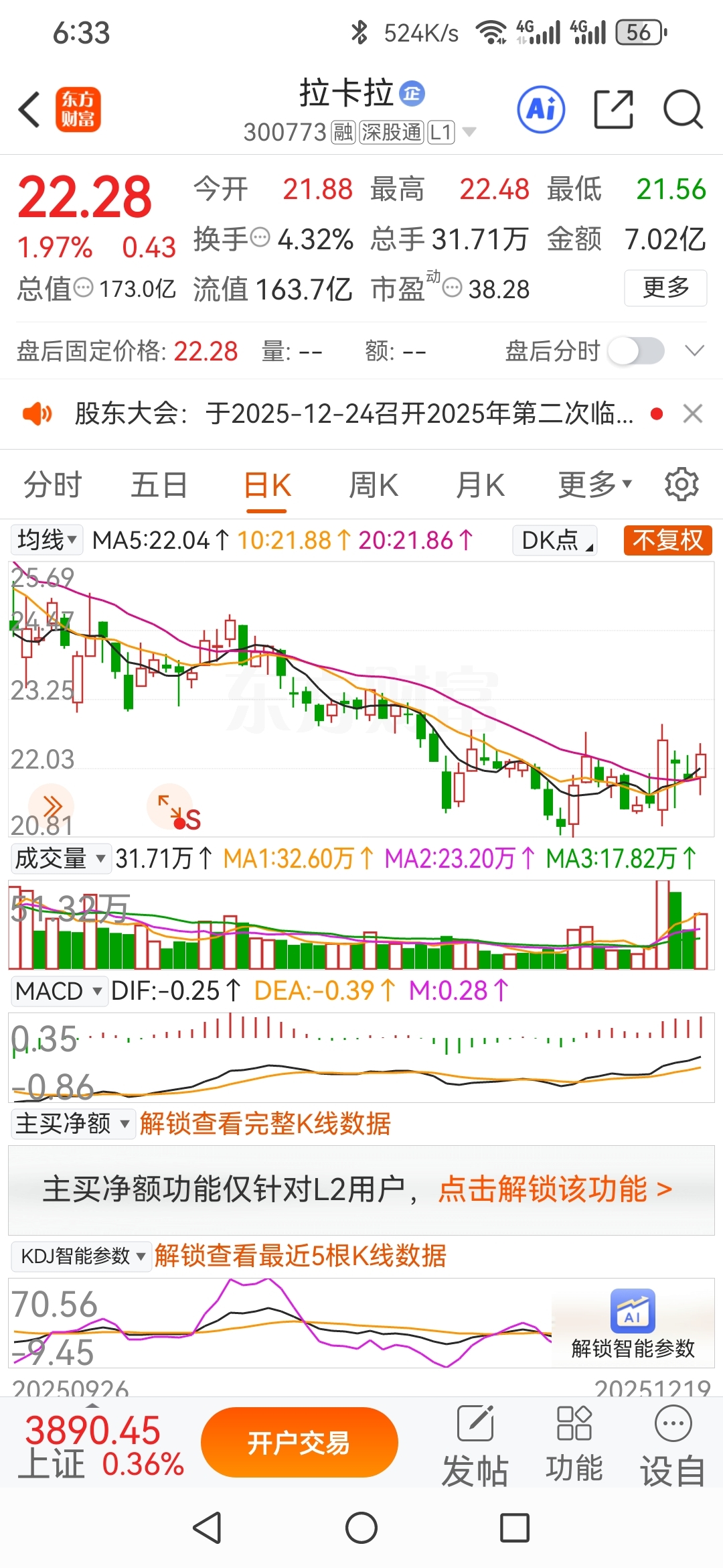 $拉卡拉(SZ300773)$ 底部有量,股价站在5、10、20日均线之上,有望一波行情的启动