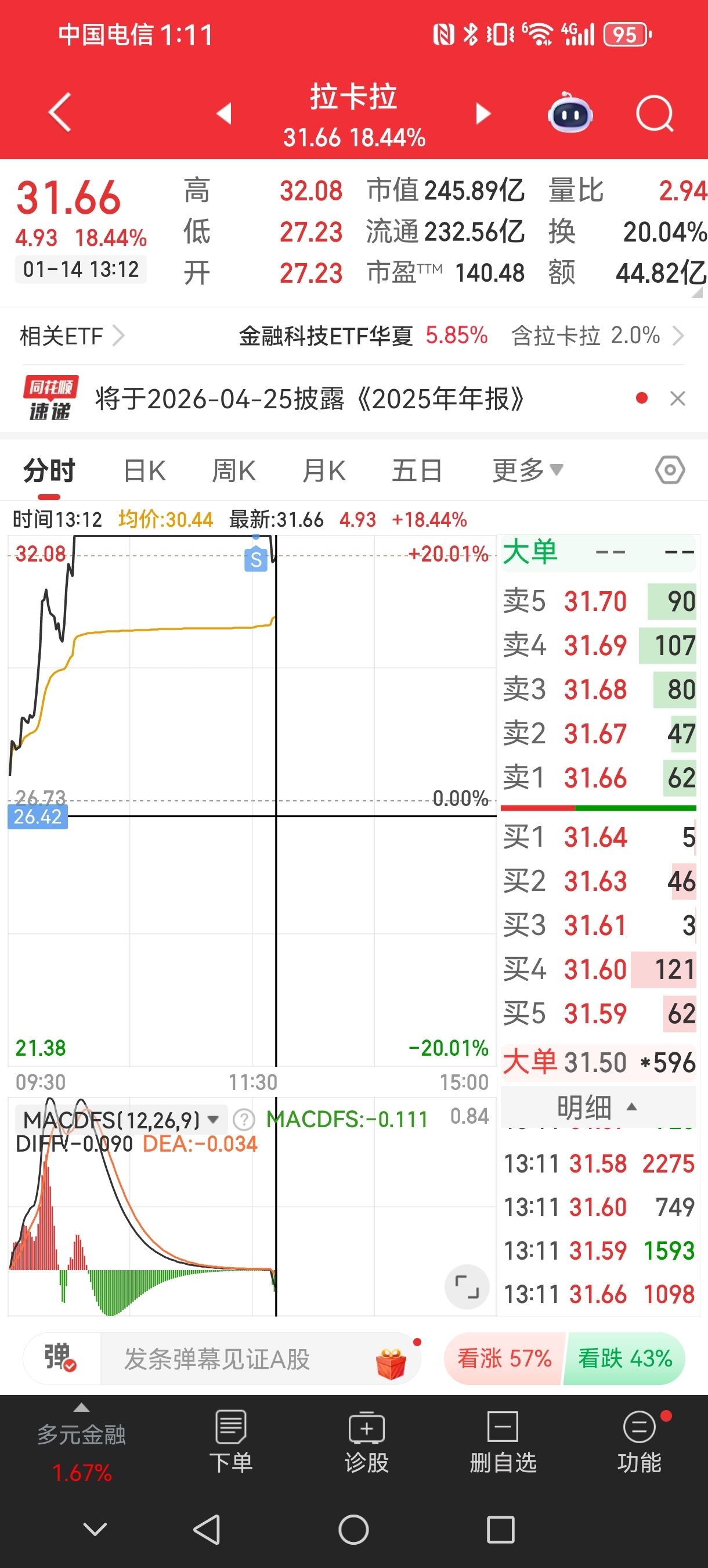 $拉卡拉(SZ300773)$ 看着要跳水了,择机先跑,看好等会再加点回来