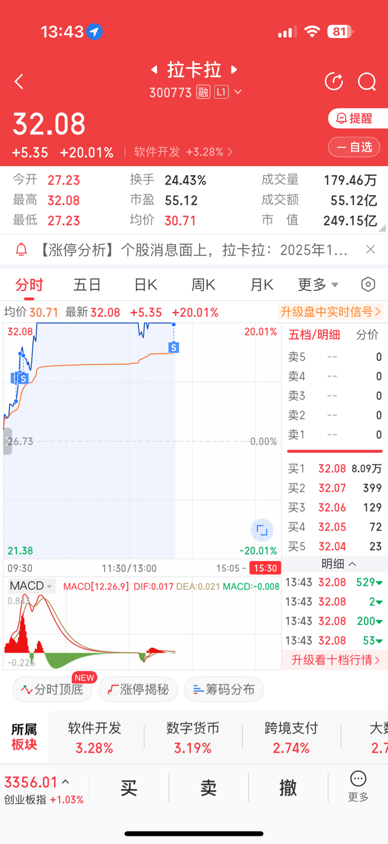 $拉卡拉(SZ300773)$ 太吓人了,空仓冷静两天吧,卖飞了没办法