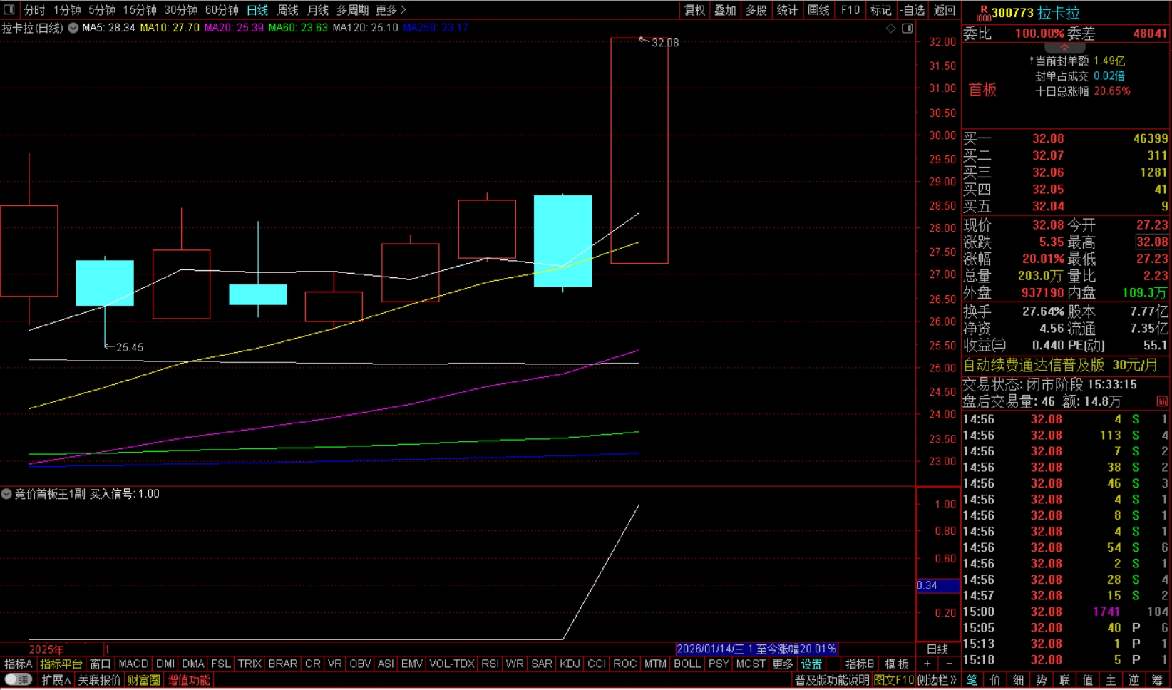 $拉卡拉(SZ300773)$ 龙抬头竞价首板王战法