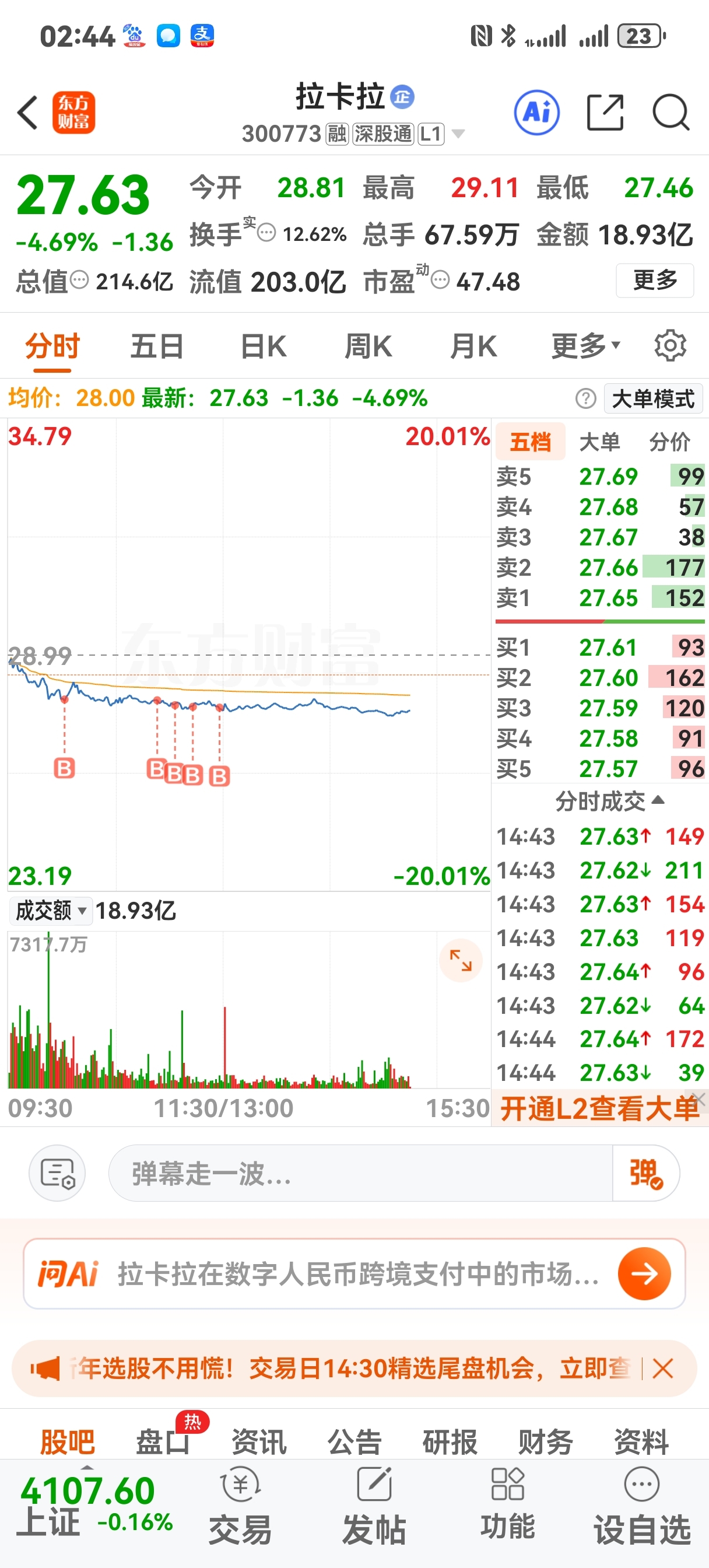 $拉卡拉(SZ300773)$